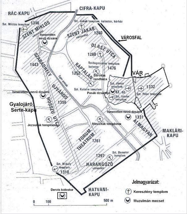 8- Minoriták temploma és rendháza. mellé a muszlimok dzsámit építettek. A patak mellet lévő régi templom és rendház maradványait 1783-ban lebontották.
