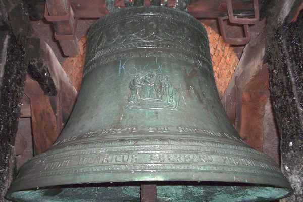 A Szent Bernát templom vizitációs harangját a volt egri plébános, Valluch atya leírásából ismerjük: alsó átmérője 109 centi, s 722 kilogrammot nyom. A paláston a Mária látogatása Erzsébetnél jelenet látható, s Szent Bernát-, Szent Benedek- és Szent Róbert-ábrázolás.