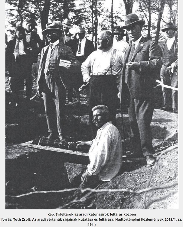 (Első kép az aradi vértanúk kivégzése, a második kép a Kisasszony temetőben Lenkey sírja, a harmadik képen Sín János a vértanúk sírjainak feltárása közben)