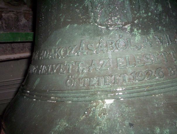 A HÍVEK ADOMÁNYÁBÓL A VILÁGHÁBORÚBA ELVITT HARANG HELYETT ÖNTETETT 1926-ban.