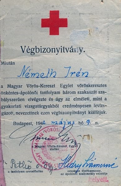 (dokumentumok a nemrégen elhunyt Németh Irén önkéntes vöröskeresztes ápoló gyűjteményéből való)