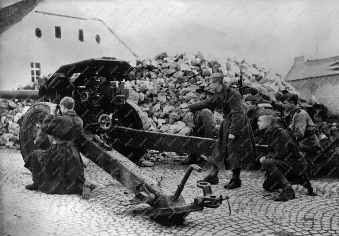 Eger, 1944. Szovjet tüzérség lőállása Egerben.