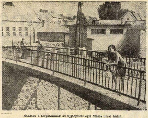 A Mária utcai híd 1781-ben készült el, amikor Eszterházy püspök a városba törő árvizek ellen megépíttette a hatalmas védőgátat. A vízfolyással szemben épült gát közepére helyezett híd két boltívét eltorlaszolta az 1878-i áradás lesodrott hordaléka és a völgy északi részén felduzzadt víztömeg óriási nyomása ledöntötte a gátat.