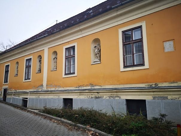 Az U-alakú emeletes barokk lakóház legrégebbi (nyugati) része 1753-ban, a középső traktus 1760 körül, a keleti szárny 1777-1781 között épült. A nyugati homlokzat szobrai balról jobbra: Szent Flórián, Mária Magdolna, Nepomuki Szent János és Evangelista Szent János. Singer Mihály egri szobrászmester alkotásai.