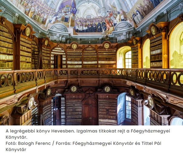 Végül lehull a lepel a legrégebbi könyv mibenlétéről is. Ehhez viszont át kell mennünk képzeletben a Líceum épületének egy másik, helyiségébe, a festői szépségű Főegyházmegyei Könyvtárba, amely első pillantásra is olyan érzetet kelt, mintha oda belépve régmúlt korok mesevilágába csöppennénk.