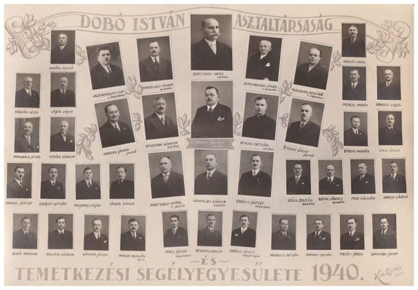 Dobó István Asztaltársaság 1940-ben készült tablója. Segélyezték a szegények temetkezését. Sokszegény család vplt akik nem tudták pénz hiány miatt eltemettetni hozzátartozójukat.