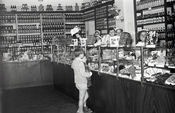 1957 február 17-én kitódultak az egri emberek a Széchenyi utcára a jó időben. Népszerű és áruval jól ellátott üzlet volt. Egy részén kávézó szolgálta ki a vevőket.