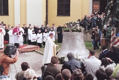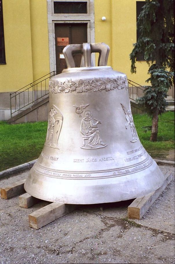 1944-ben vitték el a főszékesegyház tornyából hadi célokra, attól kezdve csak három régi (kisebb) harang hívott misére. A most elkészült új és legnagyobb harang az újjáépítés, valamint a