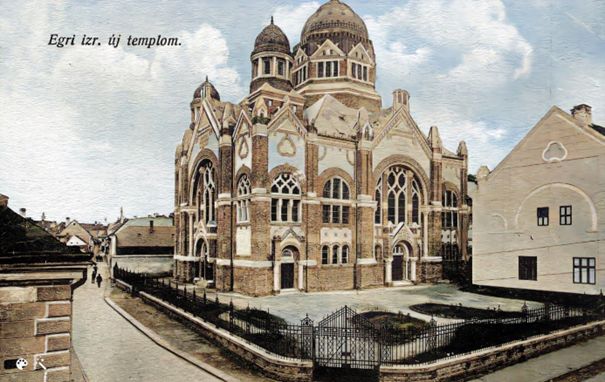 1847-ben alakult meg, első rabbija Weisz József volt. A legkorábbi zsinagóga az 1840-es években épült. Az 1868–1869-es kongresszust követően magukat status quo ante elnevezéssel illették, nem csatlakoztak sem a kongresszusi határozatokat elfogadókhoz (neológ), sem az azokat elutasítókhoz (ortodox).Az ortodox hitközség 1877-ben jött létre Egerben, zsinagógájukat 1889-ben kezdték építeni a Kossuth Lajos utcában. Ez az épület, valamint a legkorábbi zsinagóga az Eger-patak partján napjainkban is áll. Jelenleg mindkettő kiállítóhelyként működik.A status quo ante hitközség 1909-ben nyújtotta be kérelmét Eger város mérnöki hivatalához az ú.n. Binét-féle telken templom, tanácsház és templomszolga lakás, valamint bolthelyiségeket magában foglaló épület építésére. A tervet Bárány Géza mérnők kézsítette, ez azonban csak papíron maradt. Az új zsinagógát 1913. szeptember 13-án avatták fel. Az építés kezdeményezője nagyecséri Kánitz Dezső (1856–1938) volt, a város egyik meghatározó családjának tagja. Rendkívül fontos szerepet töltött be a város gazdasági életében, negyven éven keresztül vezette a status quo hitközséget.A zsinagóga Baumhorn Lipót tervei alapján készült. Baumhorn a századforduló nagy zsinagóga tervezője-építője volt. Huszonkét új zsinagóga és számos felújítás dicséri keze munkáját. Mesterműve a szegedi zsinagóga.Az építés 1911-ben kezdődött és 1913 augusztusában fejeződött be. A templom építése 300.000 Koronába került. A templom létrejöttében elévülhetetlen érdemeket szerezett: nagyecséri Kánitz Dezső hitközségi elnökön kívül dr. Schweiger Lázár főrabbi, Ungár Ignác, Alföldi Mór, Czeisler Zsigmond, Irtényi Manó, Grosz Jakab, Kánitz Lipót, Kánitz Ödön és neje, Knöpfler Bernát, Pressler Ferenc tb. hitközségi elnök, Révész Péter, Salamon Miksa, Setét Sándor, dr. Schwarcz Soma, Ungerleider Lajos, Weinberger Zsigmond, Weisz Fülöp, Buchhalter Bernát, dr. Schossberger Soma, Polatsik Jenő.