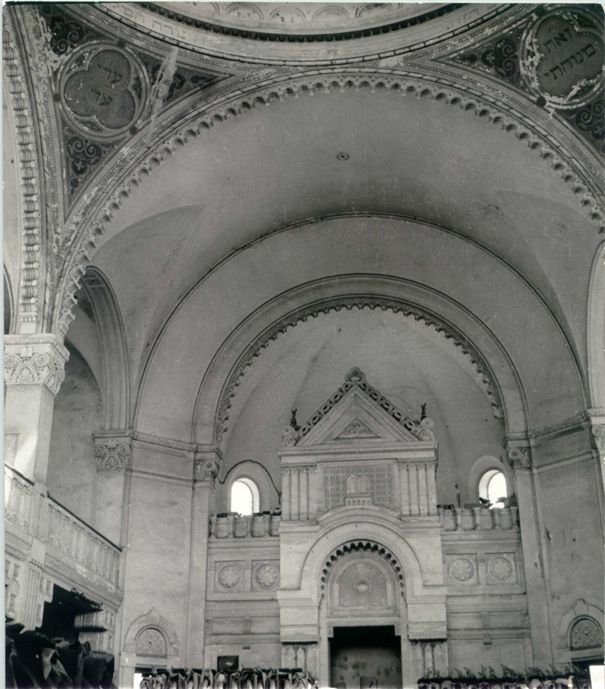 1944-ben készült templom belső fotó a frigyszekrény helyéről.