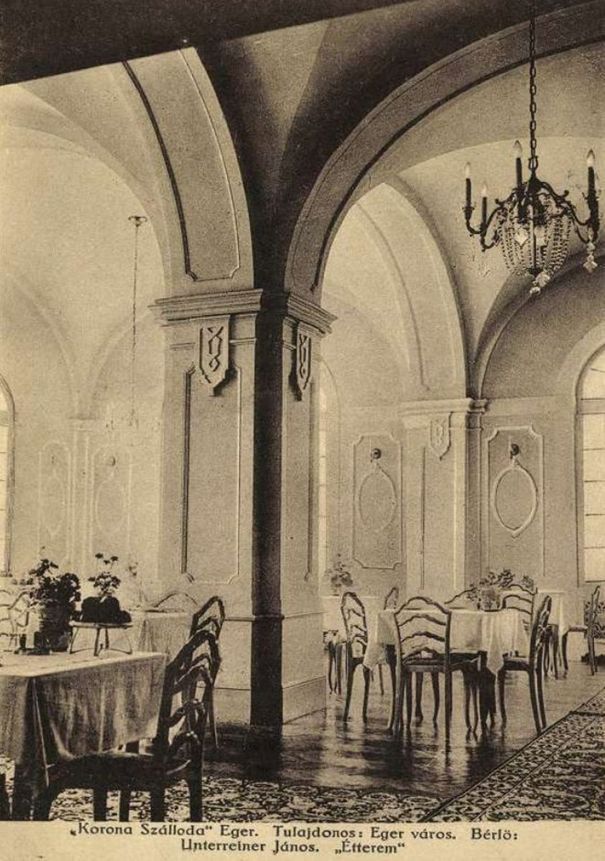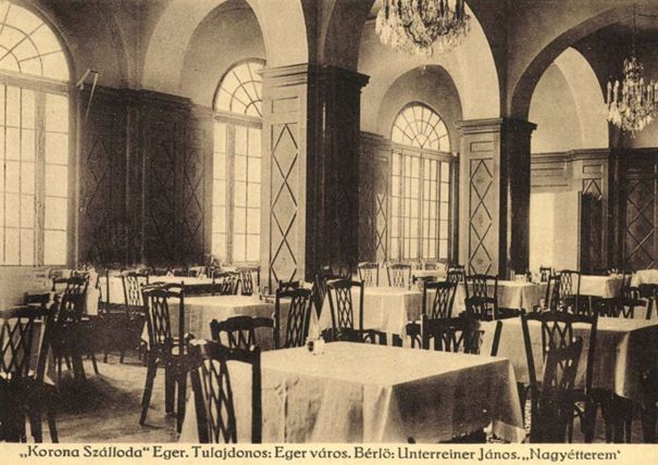 Ünnepélyes átadására 1929. március 30-án került sor. Étterme, grillje, eszpresszója, hangulatos kerthelyisége a társadalmi élet gyakori színhelye volt. 1935-ben némileg átalakították a házat, a mélyföldszint fölött 1936. február 8-án megnyílt a Kis Korona, a Korona esti táncos helyisége, „olyan hangulattal, amelyet csak a világvárosok legelőkelőbb, legszebb esti tánchelyei helyei árasztanak. Az ízlés, finomság, ötlet kis ékszerdoboz a Kis Korona, és méltán lesz országos hírű látványossága Eger városának”.