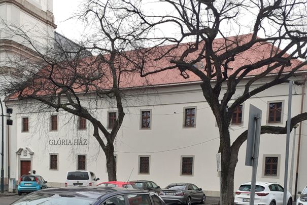 Foglár György kezdte meg építtetését 1744-ben, építésze előbb Giovanni Battista Carlone, majd Povolni János volt. Eredetileg jogakadémiának, a Collegium Juridicum Foglarianumnak épült. Kivitelezési hibák miatt az építkezés megszakadt. A második emeletet már Bartakovics építtette rá, a kápolna pedig 1855-ben készült el.