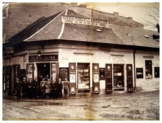 Klein Zoltán üveg-porcelán üzlete. A mai Szent István kút helyén állt.