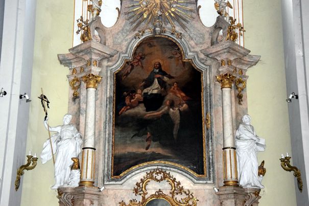 Lépjünk be a latin kereszt alakú, egyhajós, háromszakaszos templombelsőbe. Jobbról balra haladva az első mellékoltárhoz érünk.