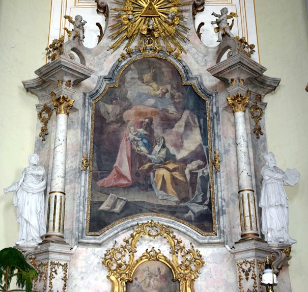 Az oltárkép Szt. Annát ábrázolja, amint kezét nyújtja, hogy átvegye a kis Máriát Szt. Joachimtól. A háttérben angyalok, középen az Atyaisten alakja. A képet szintén Kracker János Lukács festette 1775-ben Az egyik szobor Zakariás szobra, a másik ismeretlen.