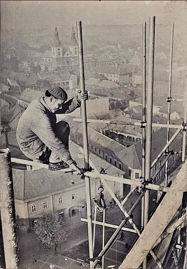 Különleges fotó készült a templom felújítása során. valószínű az1950-es évek végén: