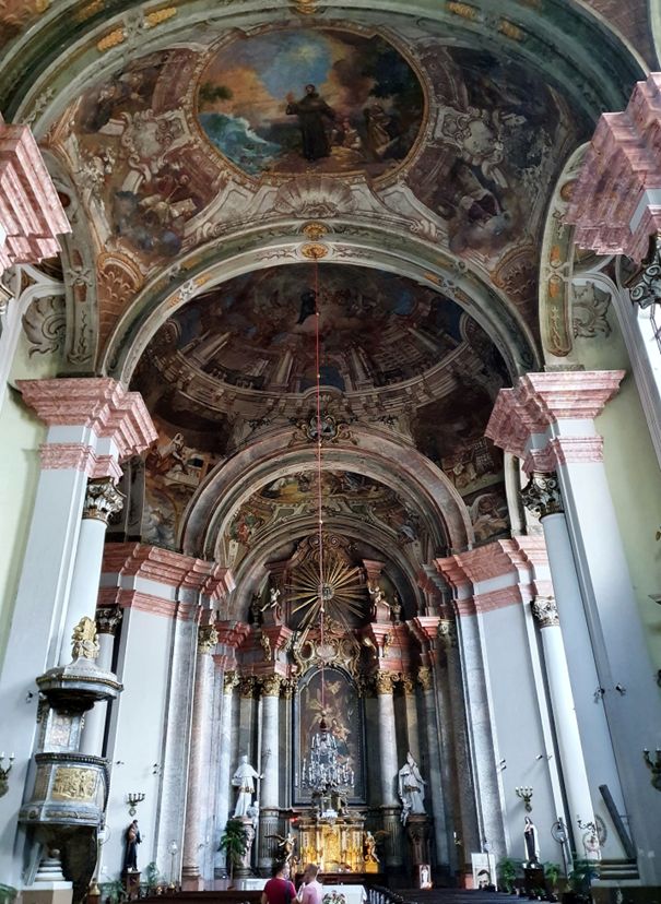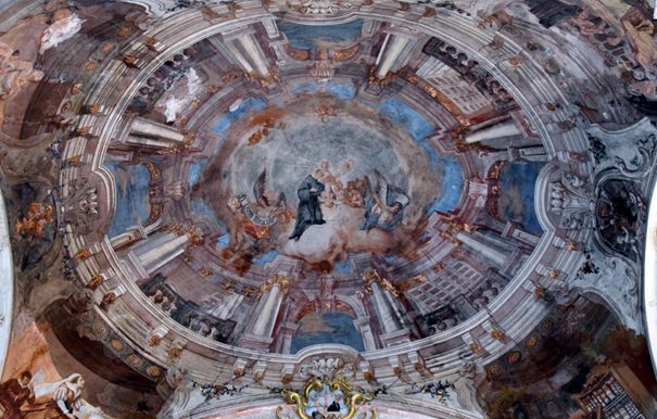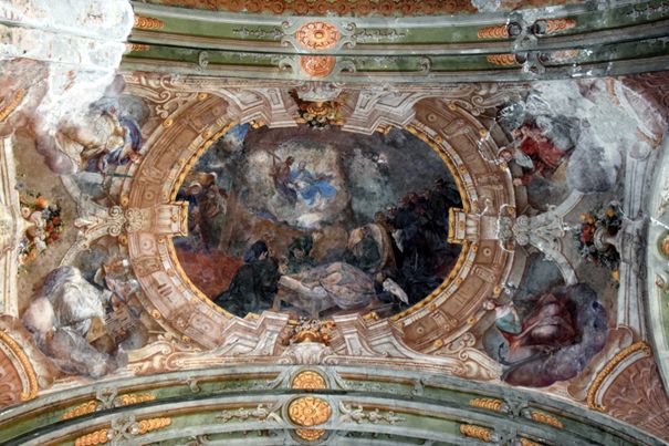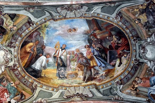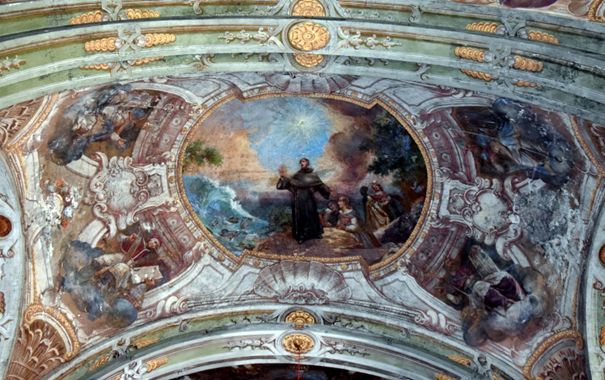 A mennyezet-freskók Reindl Márton pozsonyi festő művei, 1769-1770. Jelenetek Szt. Antal életéből.